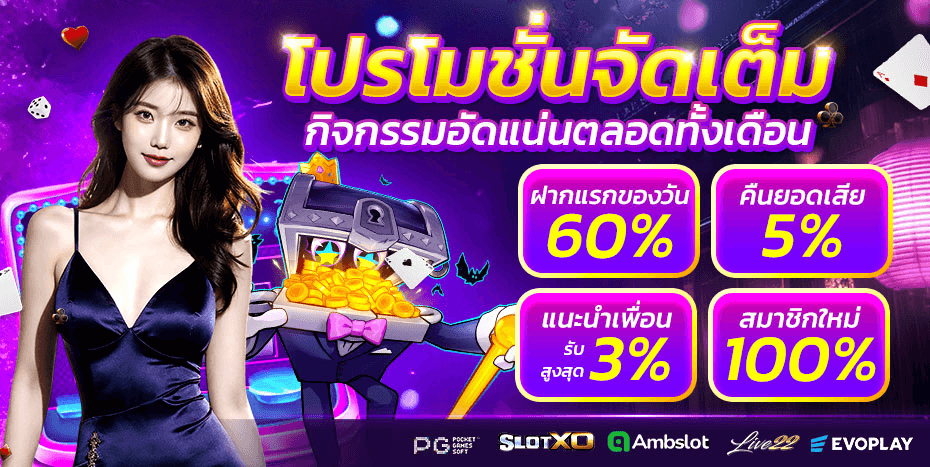 ตอบ : มีโบนัสต้อนรับสมาชิกใหม่ 100%, โปรโมชั่นคืนยอดเสีย 10% ทุกสัปดาห์, และกิจกรรมแจกเครดิตฟรีประจำเดือน